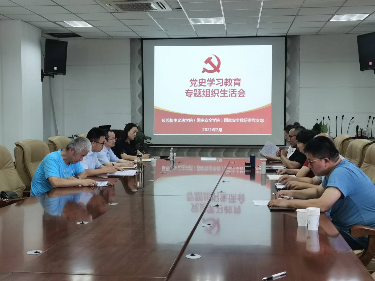为推动党史学习教育深入开展,切实增强党支部党史学习教育成效,7月13日下午,反恐法学院国家安全教研室党支部以“学党史、悟思想、办实事、找差距”为主题召开专题组织生活会,会议由支部书记李锋主持,反恐法学院院长舒洪水同志以普通党员身份参会,校党委党史学习教育督导组第二小组成员盖青青同志列席会议。