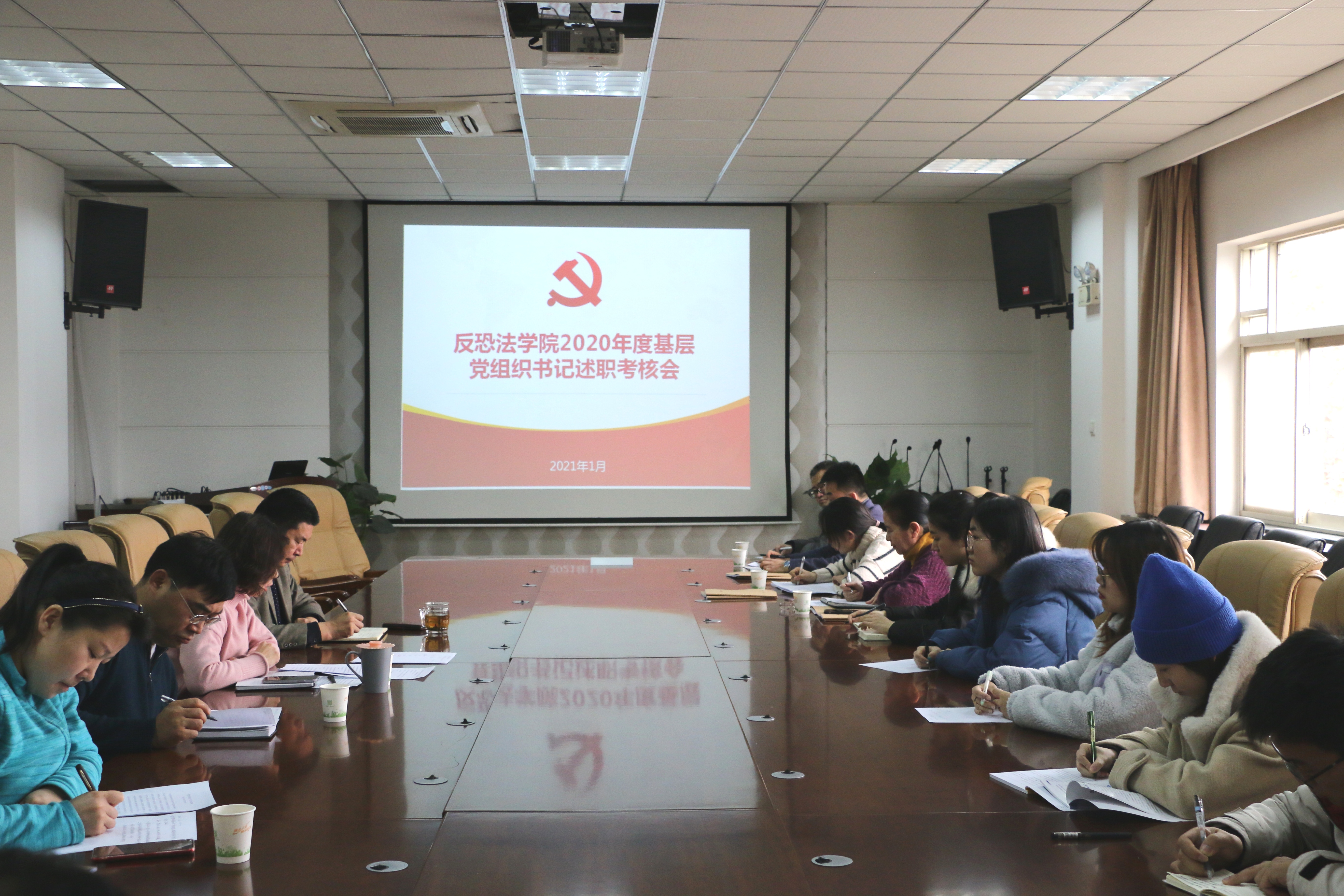 )党委在学院会议室召开2020年度基层党支部书记述职考核大会,学院党委委员、学院领导班子成员、党支部书记、师生代表17人参加会议。会议由院党委副书记侯颖怡主持。