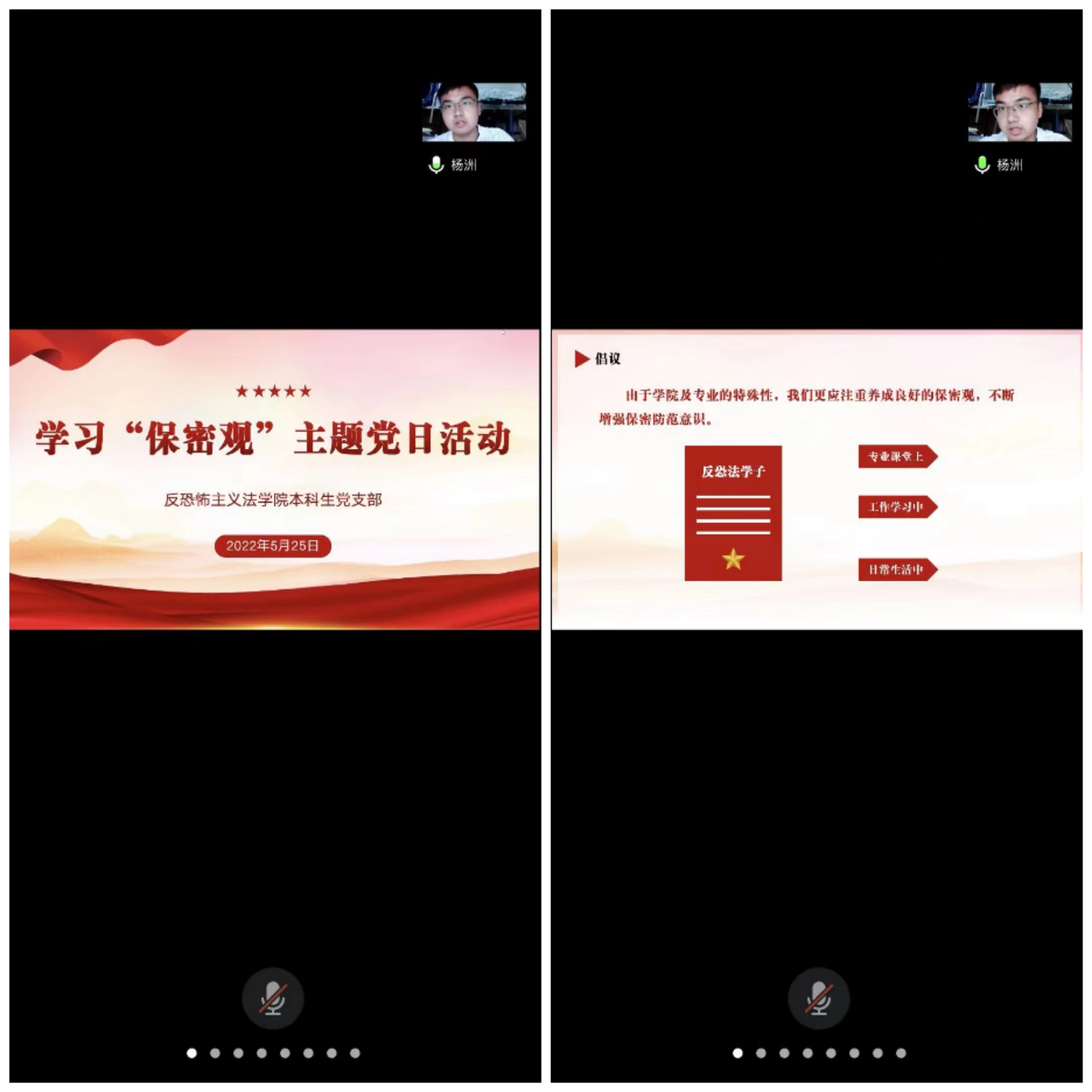 为认真贯彻落实新时代保密工作要求,进一步增强党员学生保密意识、保密能力,筑牢安全思想防线,5月25日,韩国三级片 本科生党支部通过腾讯会议组织开展学习“保密观”主题党日活动。活动由党支部成员杨洲主持,全体本科生党支部成员参加。