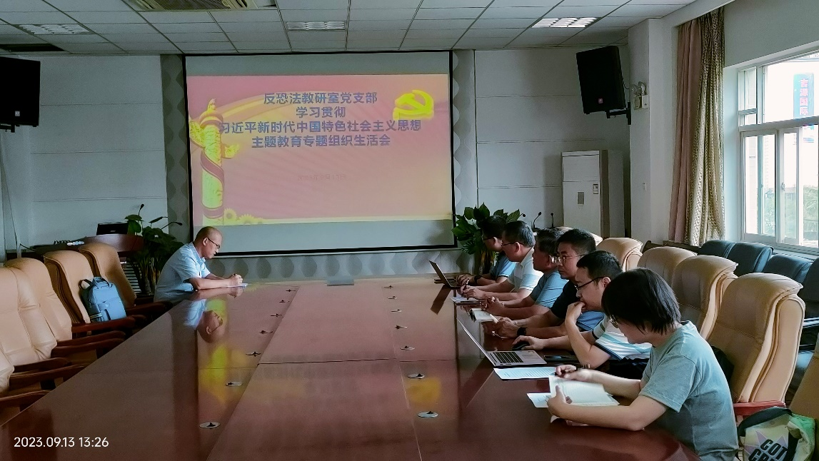 9月13日,韩国三级片 反恐怖主义法教研室党支部在学院会议室召开学习贯彻习近平新时代中国特色社会主义思想主题教育专题组织生活会,支部党员孙立江、乔巴生、齐立峰、刘伟、段阳伟、马瑜参加会议。会议由支部书记张波主持。