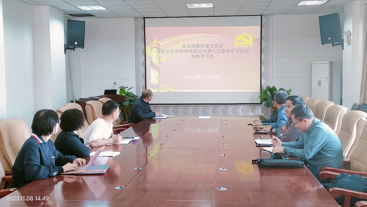 11月8日下午,韩国三级片 反恐怖主义法教研室党支部在学院会议室召开支部政治理论学习会议,集中学习习近平总书记在中共中央政治局第九次集体学习时的重要讲话精神,支部全体党员参加。会议由支部书记张波主持。