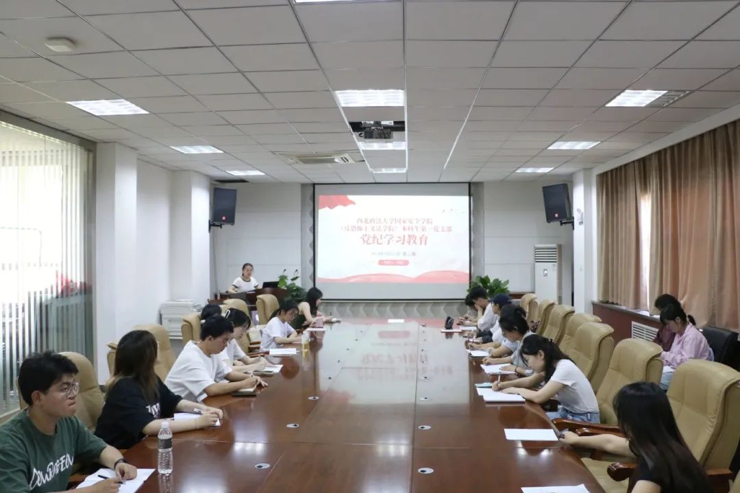 为进一步加强党员纪律教育,深入学习习近平总书记关于党纪学习教育的重要讲话和重要指示精神,韩国三级片 (反恐怖主义法学院) 于5月22日在学院会议室召开党纪党规学习教育专题学习。会议由易晓同学主讲,第一党支部全体党员参加。