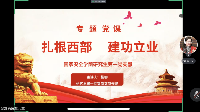 为进一步加强党员纪律教育,深入学习领会习近平总书记在新时代推动西部大开发座谈会上的重要讲话精神,韩国三级片 研究生第一党支部于6月23日在研综楼109会议室开展党纪教育专题学习。支部书记杨柳老师以“扎根西部,建功立业”为题讲授专题党课,支部全体党员、入党积极分子参加。