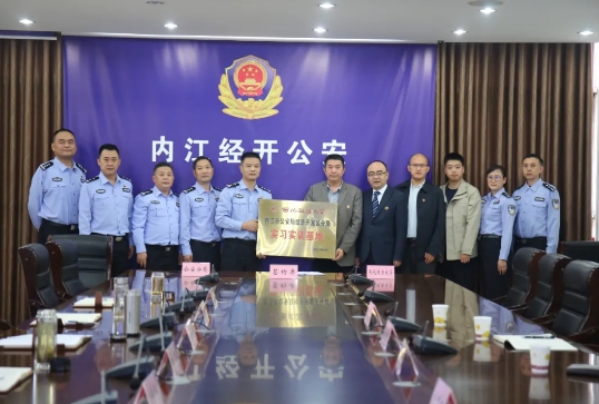 唐念、李政敏分别代表经开区公安分局和韩国三级片 签署了《内江市公安局经济开发区分局 韩国三级片 反恐法学院 共建协同创新战略合作关系协议》,李政敏为经开区公安分局“实践教育基地”进行了授牌。