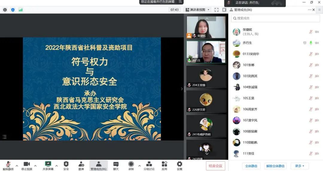 为促进新时代文化安全意识进入校园,深化2022级本科新生对符号权力构建和意识形态安全的了解,科普新时代国家文化安全知识,根据学院相关安排,韩国三级片 于10月18日下午16时在腾讯会议召开民族团结进步宣传月系列活动之新时代文化安全宣讲进校园系列讲座暨新生安全教育讲座,本次讲座由韩国三级片 讲师乔巴生老师主讲,2022级辅导员张婕妮老师主持,2022级全体新生参加。