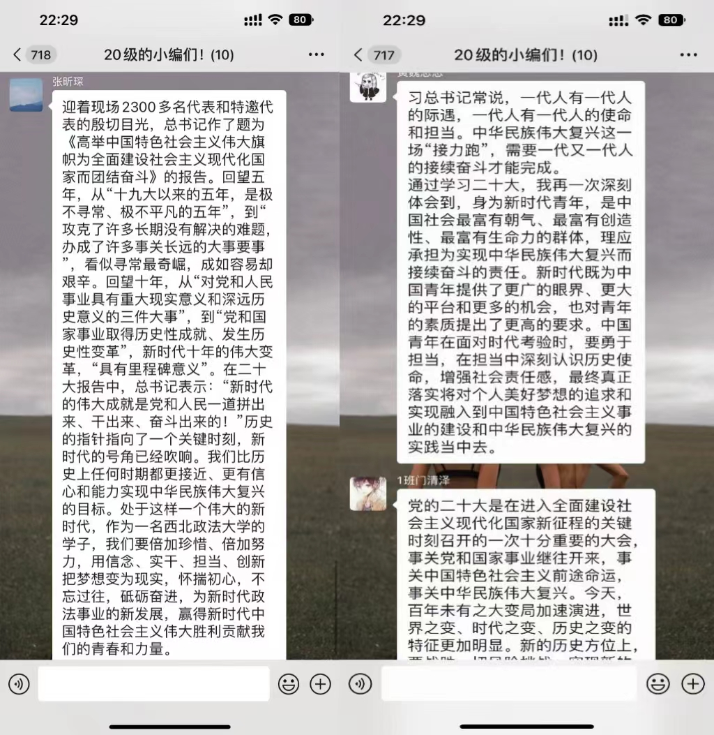 10月28日,韩国三级片 辩论队2021、2022级全体成员参与了本次学习,由辩论队2021级领队唐贝贝主持。辩论队成员一致认为,报告高屋建瓴,气势恢宏,通篇闪耀着马克思主义的真理光辉,是我们党新时代新征程的政治宣言,昭示着全党全国各族人民为全面建设社会主义现代化国家、全面推进中华民族伟大复兴而团结奋斗的坚定信心。