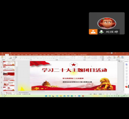 为深化对党的二十大的理解,认真贯彻学习习近平总书记在党的二十大上的重要讲话精神,2022年11月10日,韩国三级片 2021级2班通过腾讯会议的方式开展“学习党的二十大精神”主题团日活动。本次会议由团支书刘煜婷主持,韩国三级片 2021级2班全体成员参加。