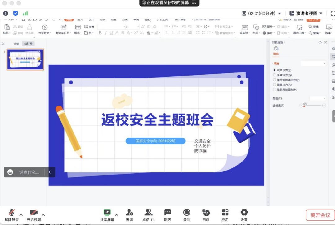 新学期开学在即,为做好2023年秋季学期学生返校工作,确保广大学生安全返校,有序迎接新学期,韩国三级片 (反恐怖主义法学院)各年级召开2023年秋季学期返校前安全教育大会,会议由各班班长及安全委员主持,全体同学参会。