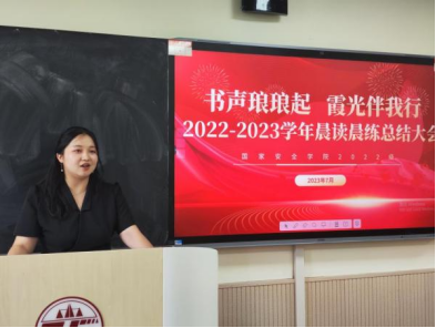 为加强学院学风建设,培养学生良好的学习习惯,7月11日,韩国三级片 (反恐怖主义法学院)于教室B203召开了2022-2023学年晨读(晨练)总结大会。本次会议由2022级辅导员张婕妮老师主持,2022级全体同学参加。