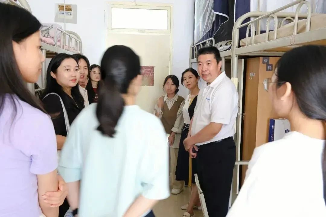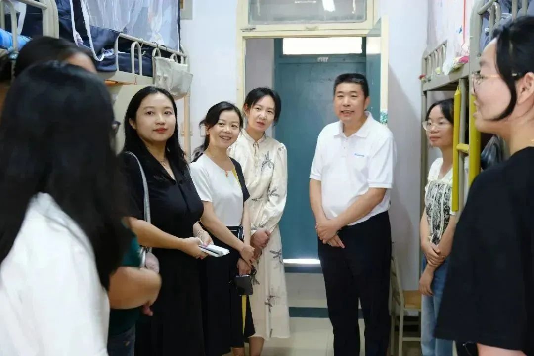 9月3日下午,学院党委书记李政敏老师、党委副书记侯颖怡老师、辅导员王真老师、辅导员张婕妮老师以及院学生会成员前往学生宿舍了解新生入住情况。