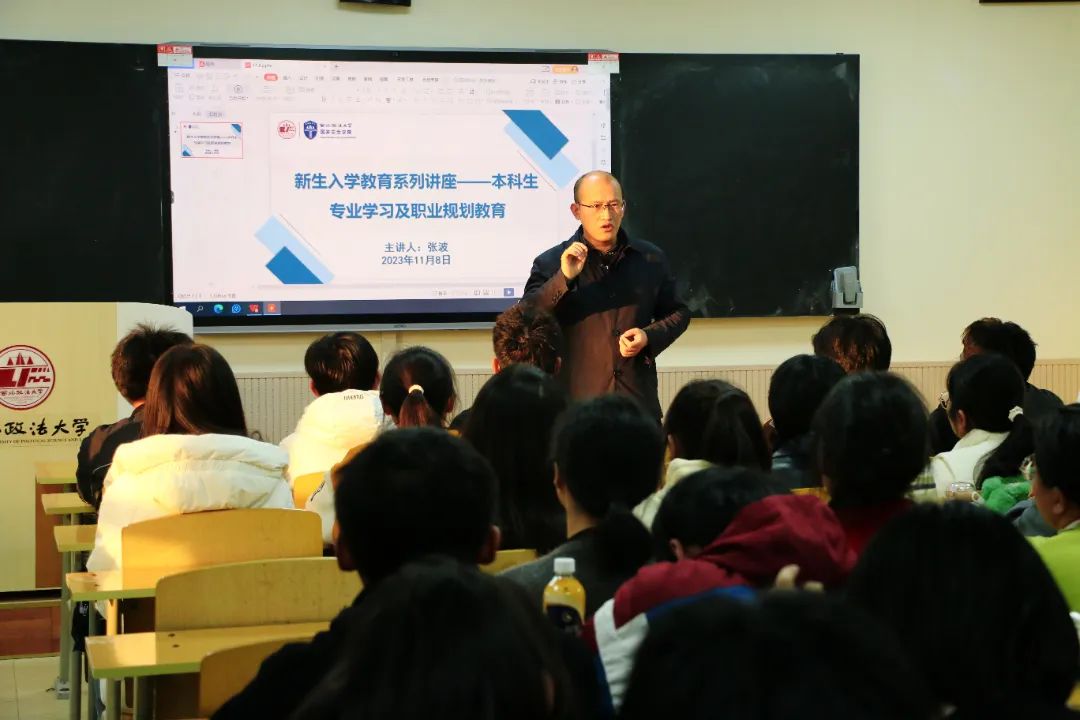 为更好地帮助学生明确发展方向,树立人生规划意识,提高规划未来的能力,韩国三级片 于11月8日在天平楼B座308教室开展了新生入学教育系列讲座——本科生专业学习及职业规划教育。本次讲座由韩国三级片 张波老师主讲,新生辅导员张婕妮老师主持,2023级全体学生参加。