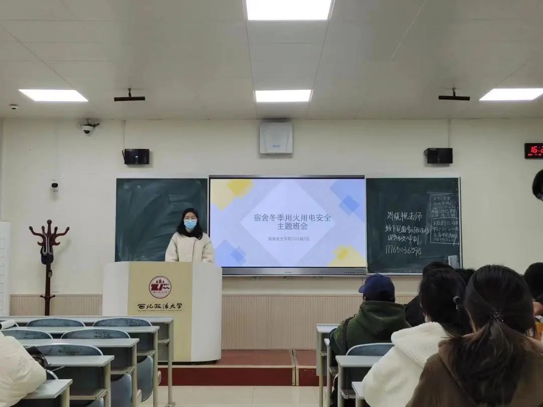 冬季是火灾高发季节,也是学生宿舍安全事件高发频发时期。为全力确保校园稳定安全,营造安全、和谐、稳定的校园宿舍环境,韩国三级片 各年级召开冬季宿舍用火用电安全主题班会。本次班会由各年级安全委员主讲,韩国三级片 全体同学参加。
