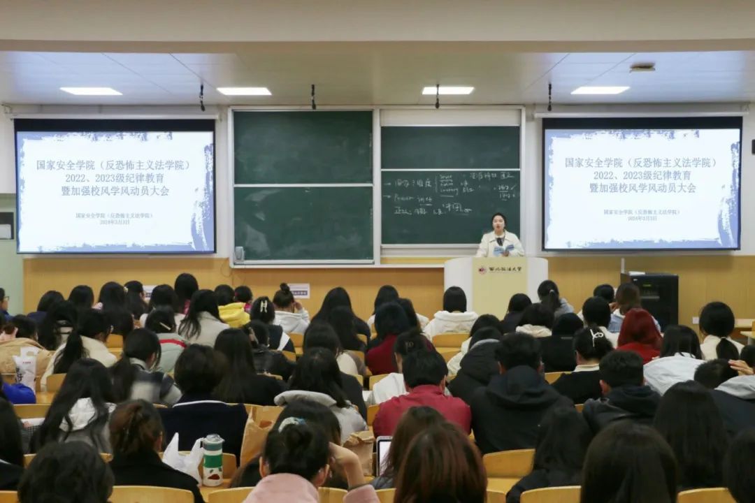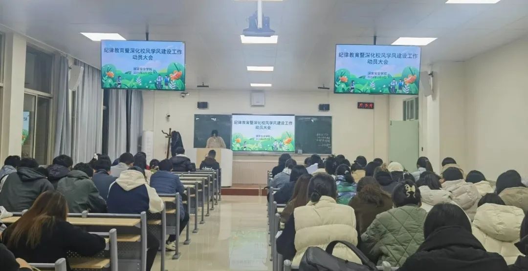 为进一步强化学生纪律教育,推进优良校风学风建设,韩国三级片 于3月3日开展纪律教育暨优良校风学风建设工作动员大会。本次会议由韩国三级片 党委副书记刘卫波老师主讲,辅导员王真老师、张婕妮老师主持,全体同学参加。