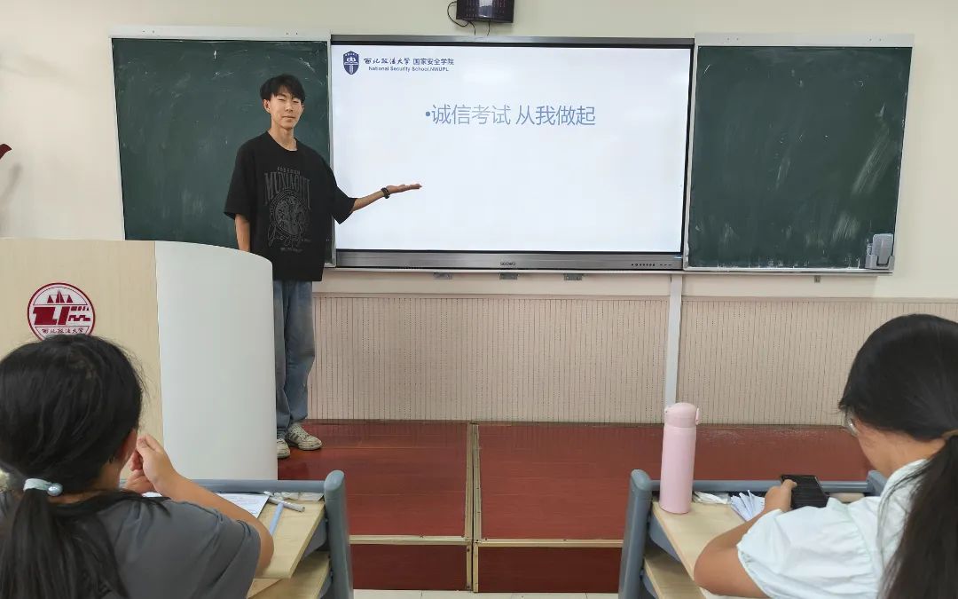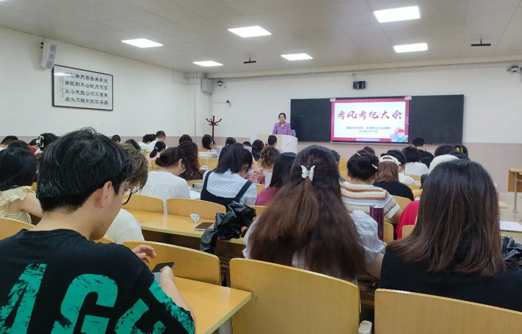 辅导员老师结合事例向同学们讲解了诚信考试的重要性,同时强调了诚信考试不仅是对知识的尊重,更是责任感和道德品格的体现。随后,各班班长带领大家领学了《韩国三级片 学生违纪处分规定》(节选)中的相关内容,号召同学们诚信应试,严守考风考纪。