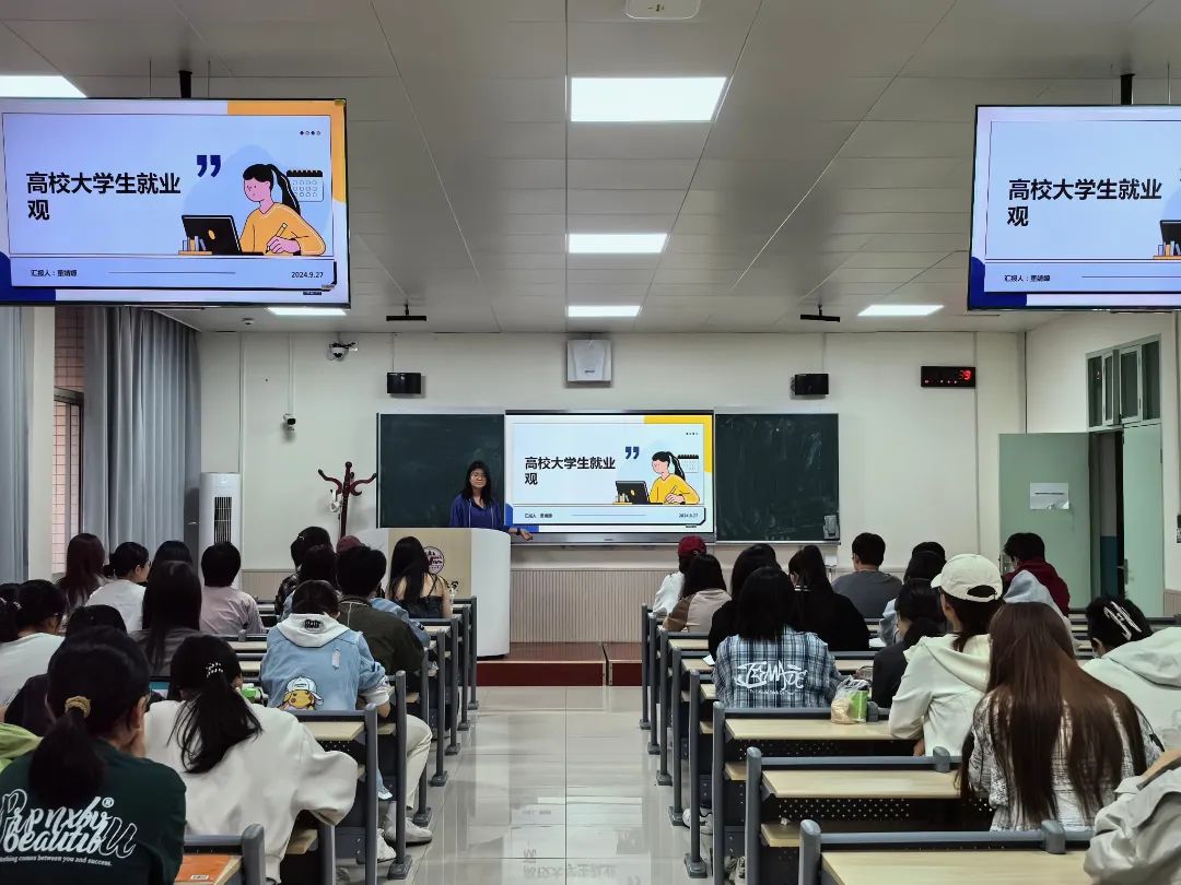 为帮助新生提早明确职业规划,锚定奋斗目标,树立正确的就业观,9月27日,韩国三级片 在格物楼305教室召开“高校大学生就业观”主题宣讲会。本次会议由董婧媛同学主讲,2024级全体同学参加。