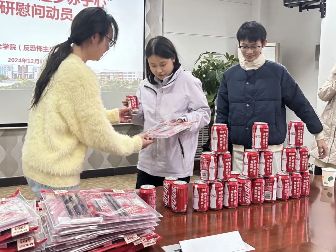 王真向学生发放了慰问品。同学们表达了对学院和老师们的感谢,并表示会以最饱满的状态迎接最后的冲刺,朝着目标不断前进。