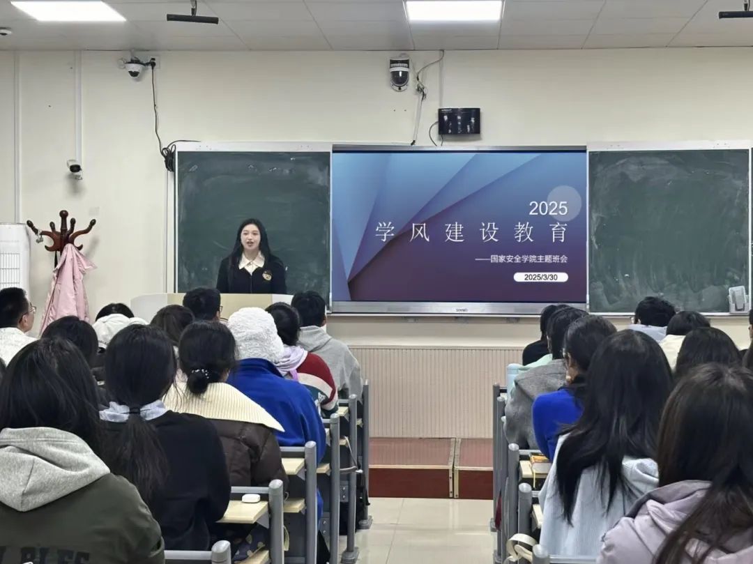 会上,张老师立足国家安全学科特色,结合当前专业发展形势和就业前景,深入分析了本年级学风现状,指出建设良好学风是培育扎实专业素养的关键举措。她强调,各学生干部应充分发挥带头作用,积极配合老师完成教学任务,有效监督同学们课堂纪律情况,带领全班同学共同提升课堂“三率”,共同营造良好的学习氛围。