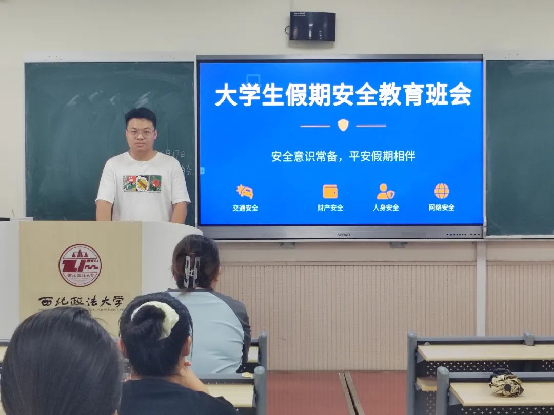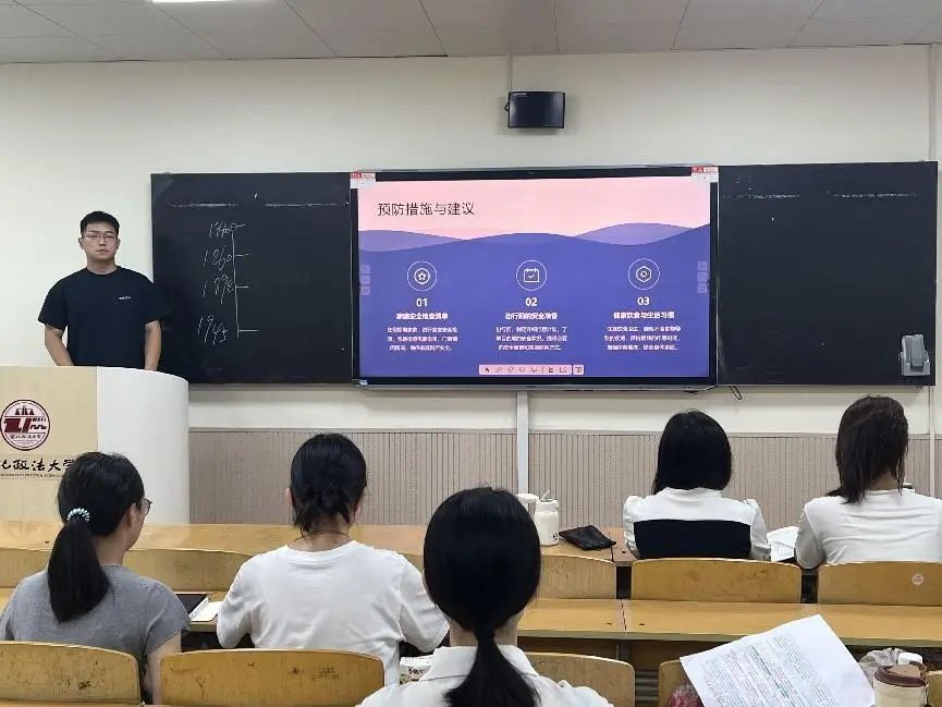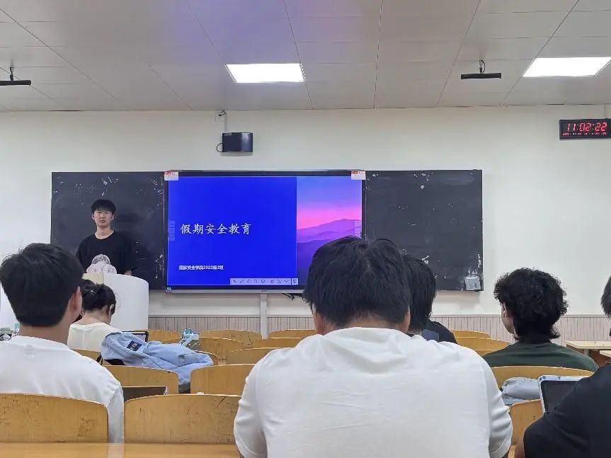 会上围绕外出游玩安全、饮食卫生安全、防溺水安全及消防安全四大板块,全面梳理了假期出行中可能存在的安全隐患及相应解决办法。通过分析近年来典型安全事故案例,引导同学们深刻认识风险预防的重要性,确保假期出行安全无虞。