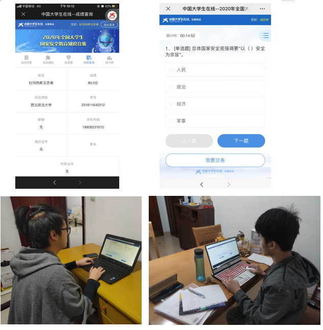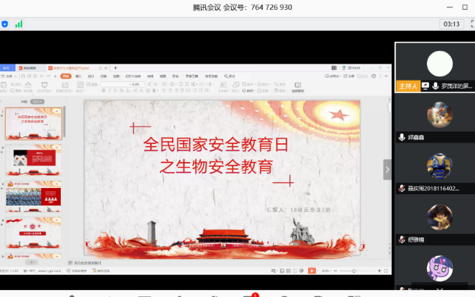 在线学习“全国大学生同上一堂国家安全教育课”。课程紧紧围绕“坚持总体国家安全观,统筹传统安全和非传统安全,为决胜全面建成小康社会提供坚强保障”活动主题,结合新冠肺炎疫情防控形势任务,突出公共卫生安全、生物安全等宣传教育内容,引导学生将总体国家安全观贯穿抗疫全过程,履行应对突发公共事件的职责义务,提升维护国家安全的自觉性和主动性。课程结束后,同学们在微信群中展开激烈讨论,同时团支部组织同学们参加国家安全知识在线问答知识竞赛、在线党团活动等强化交流学习。
