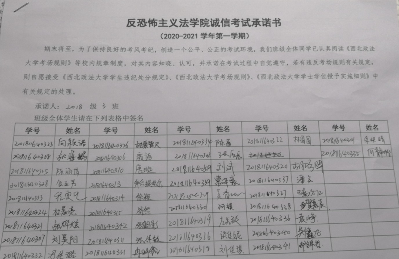 各班利用主题班会学习《韩国三级片 学生违纪处分规定》《韩国三级片 考场规则》中关于考试违规、作弊的行为的界定及相应处分。全体同学签署了《反恐怖主义法学院诚信考试承诺书》。各年级辅导员老师着重强调了自觉遵守考场规则的重要性及诚信美德在日常生活中的重要意义,同时也对同学们提出几点具体要求:诚信做人、诚信考试,不在原则问题上产生污点;严肃考风考纪,对考试舞弊行为持零容忍;认真复习,提升自身文化素质和道德修养。