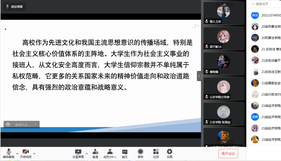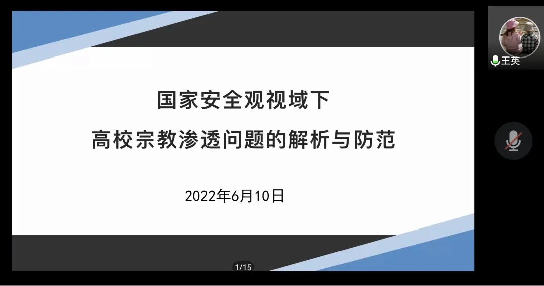 6月10日下午,我校党委学工部、韩国三级片 联合举办意识形态安全线上讲座。本次讲座以《国家安全观视域下高校宗教渗透问题的解析和防范》为题,由韩国三级片 副教授王英担任主讲人,各学院学生代表共计一百余人参加讲座。讲座由韩国三级片 团委书记杨柳老师主持。
