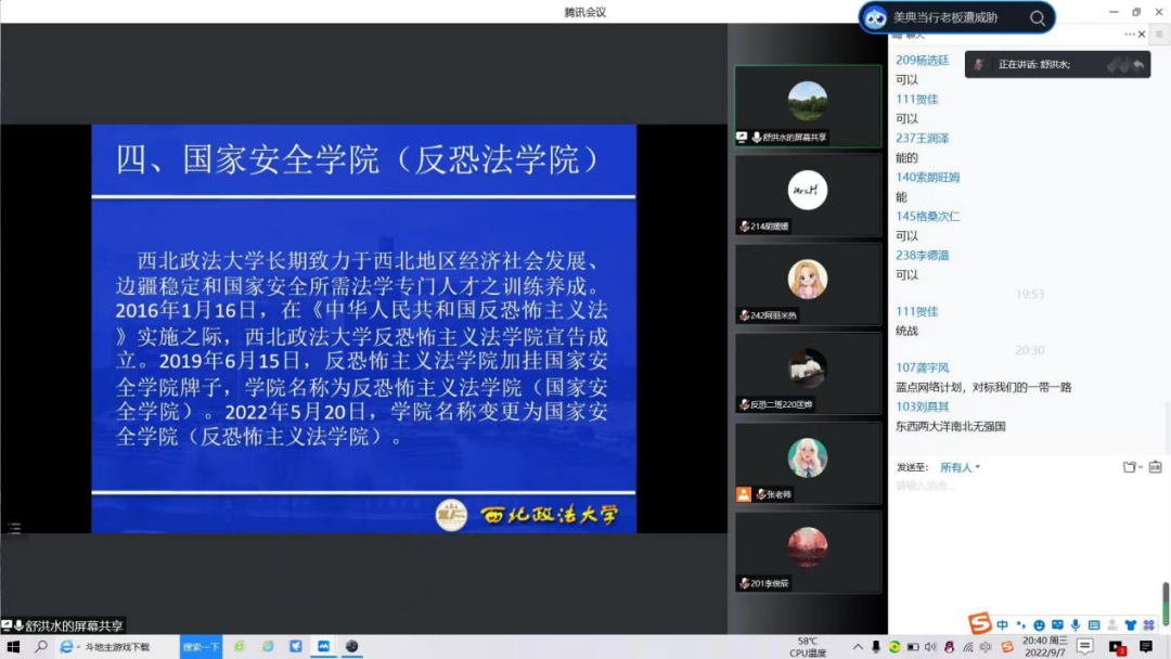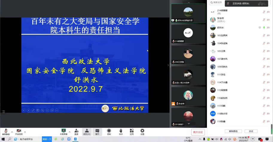 2022年9月7日晚19:30,为加强新生入学教育,帮助2022级新生明确大学生活方向,积极融入大学校园生活,培养新时代大学生的责任意识,韩国三级片 2022级新生入学教育讲座——院长第一课通过腾讯会议的方式成功举办。本次讲座由韩国三级片 院长舒洪水主讲,2022级辅导员张婕妮老师主持,2022级全体新生共同参与。