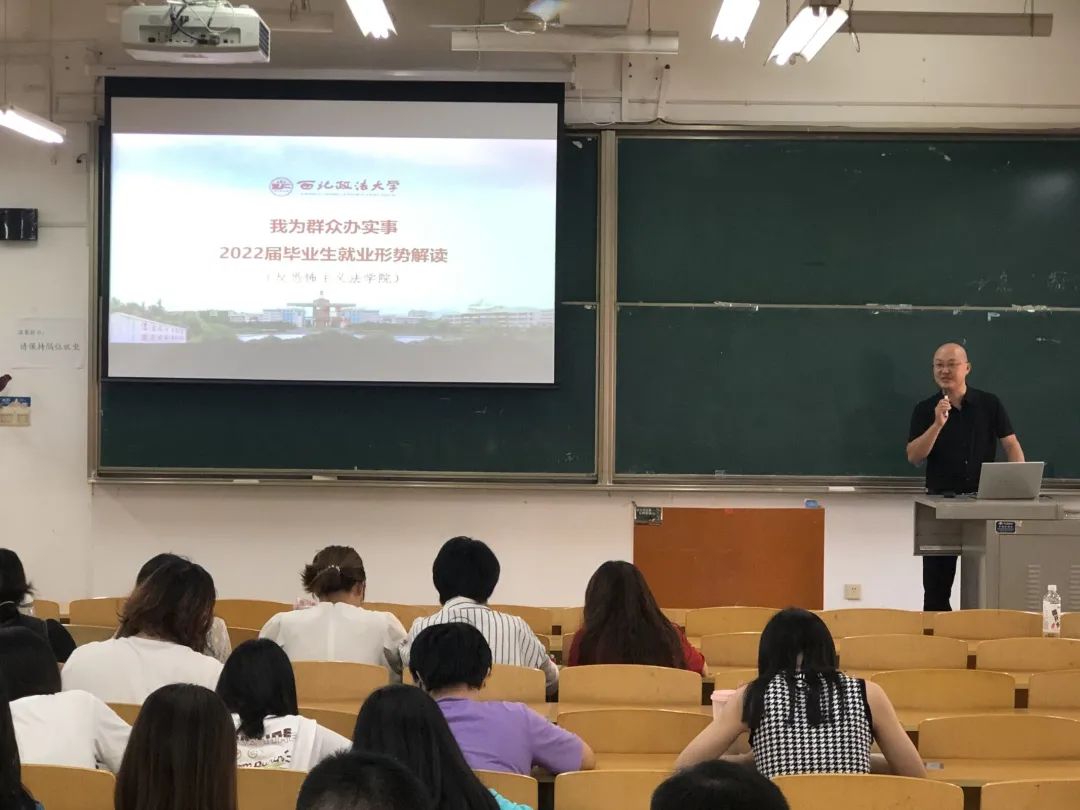 为了让2022届毕业生了解更多考研信息和就业形势,解决同学们现阶段考研、就业中遇到的各种问题,更加明确自己的目标与方向,反恐怖主义法学院(韩国三级片 )特邀请研工部副部长李洋老师,就业处杨军老师为同学们讲解当前考研政策以及就业形势。本次考研就业动员大会于9月14日下午在天平楼aj23举行,会议由2018级辅导员王真老师主持,学院党委副书记侯颖怡老师出席,全体2022届毕业生参加。
