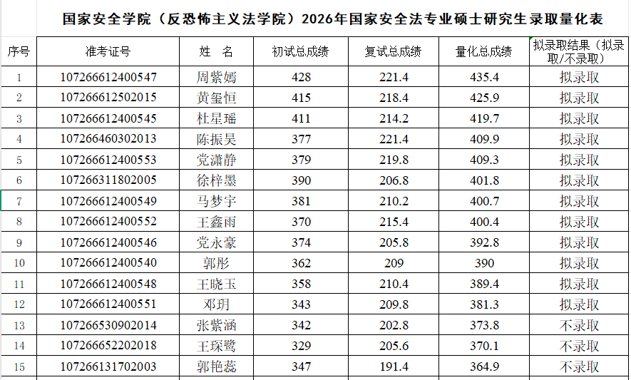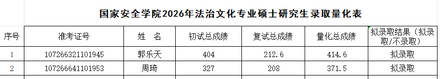 根据《韩国三级片 2026年硕士研究生复试录取工作方案》,经学院复试领导小组审核,报研究生院审定,现将2026年国家安全法学专业、反恐怖主义法学专业和法治文化专业硕士研究生拟录取名单予以公示,公示期7日(3月31日至4月6日)。如有异议,请在公示期内申请复议,逾期不予受理。