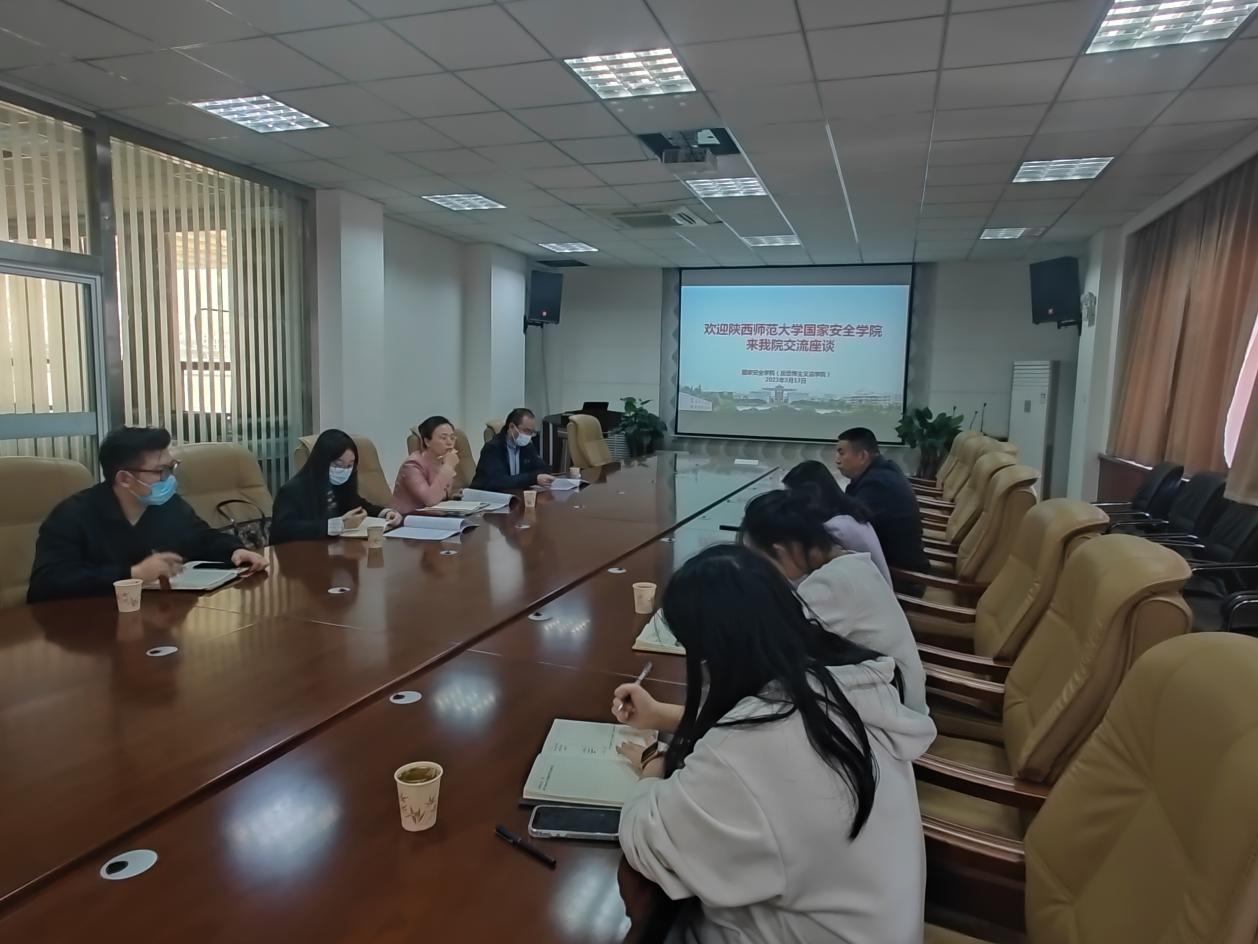 3月13日下午,陕西师范大学韩国三级片 (政法与公共管理学院)副院长戴均、党委副书记阮小飞及辅导员一行4人来韩国三级片 访问交流。韩国三级片 党委书记李政敏、副书记侯颖怡及辅导员参加座谈。