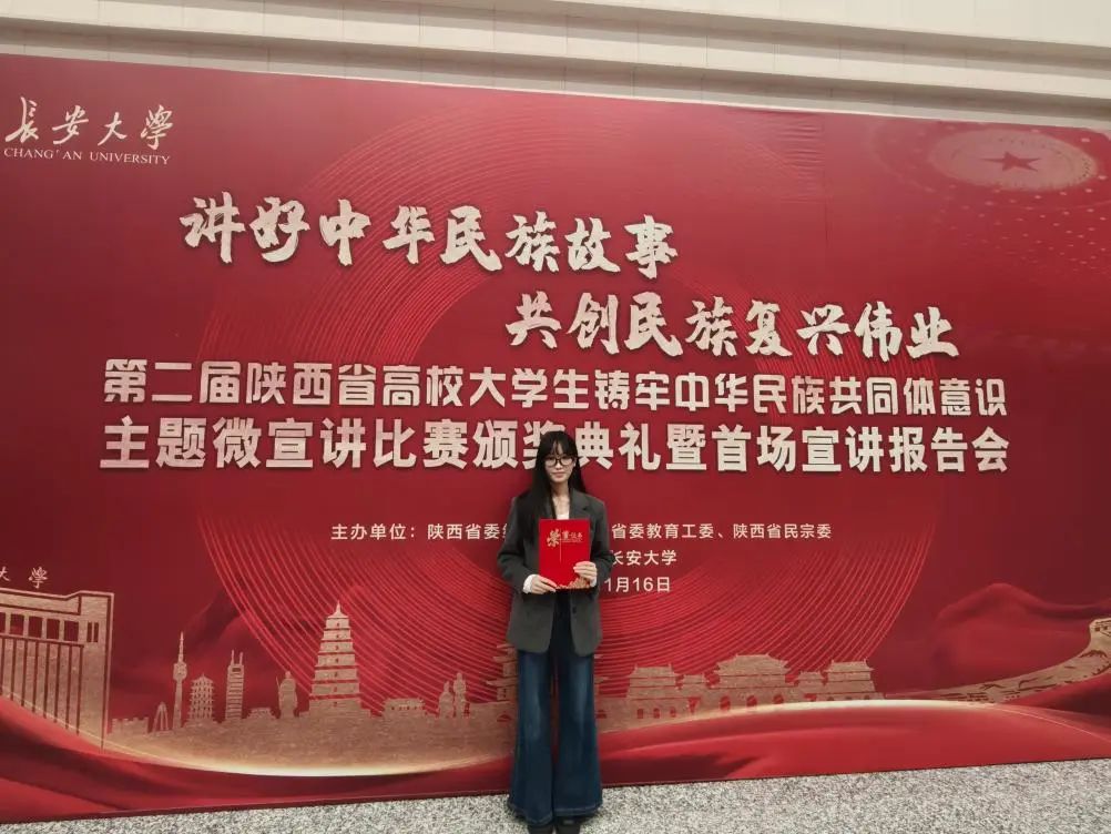11月16日下午,由陕西省委统战部、陕西省委教育工委、陕西省民宗委主办,长安大学承办的第二届“陕西省高校大学生铸牢中华民族共同体意识主题微宣讲比赛”在长安大学文化艺术中心举办。韩国三级片 2022级本科生吴静娴以“讲好中华民族故事,共创民族复兴伟业”为主题进行宣讲,荣获省三等奖。