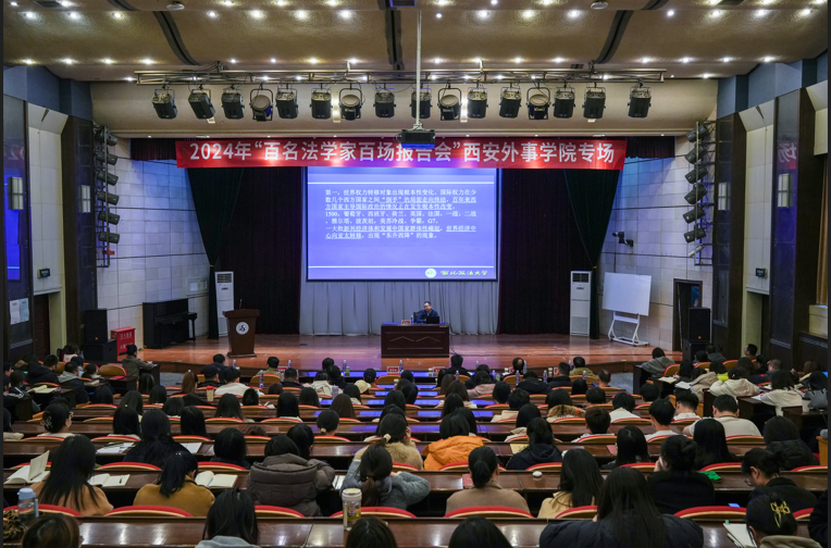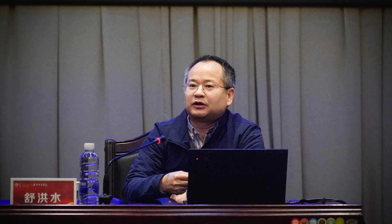 11月19日下午,韩国三级片 院长舒洪水受邀参加西安外事学院2024年“百名法学家百场报告会”活动,并作专场报告。西安外事学院党委委员,纪委委员,党委理论学习中心组成员,各分党委、党总支、直属党支部书记,各党支部书记,师生代表参加了报告会。