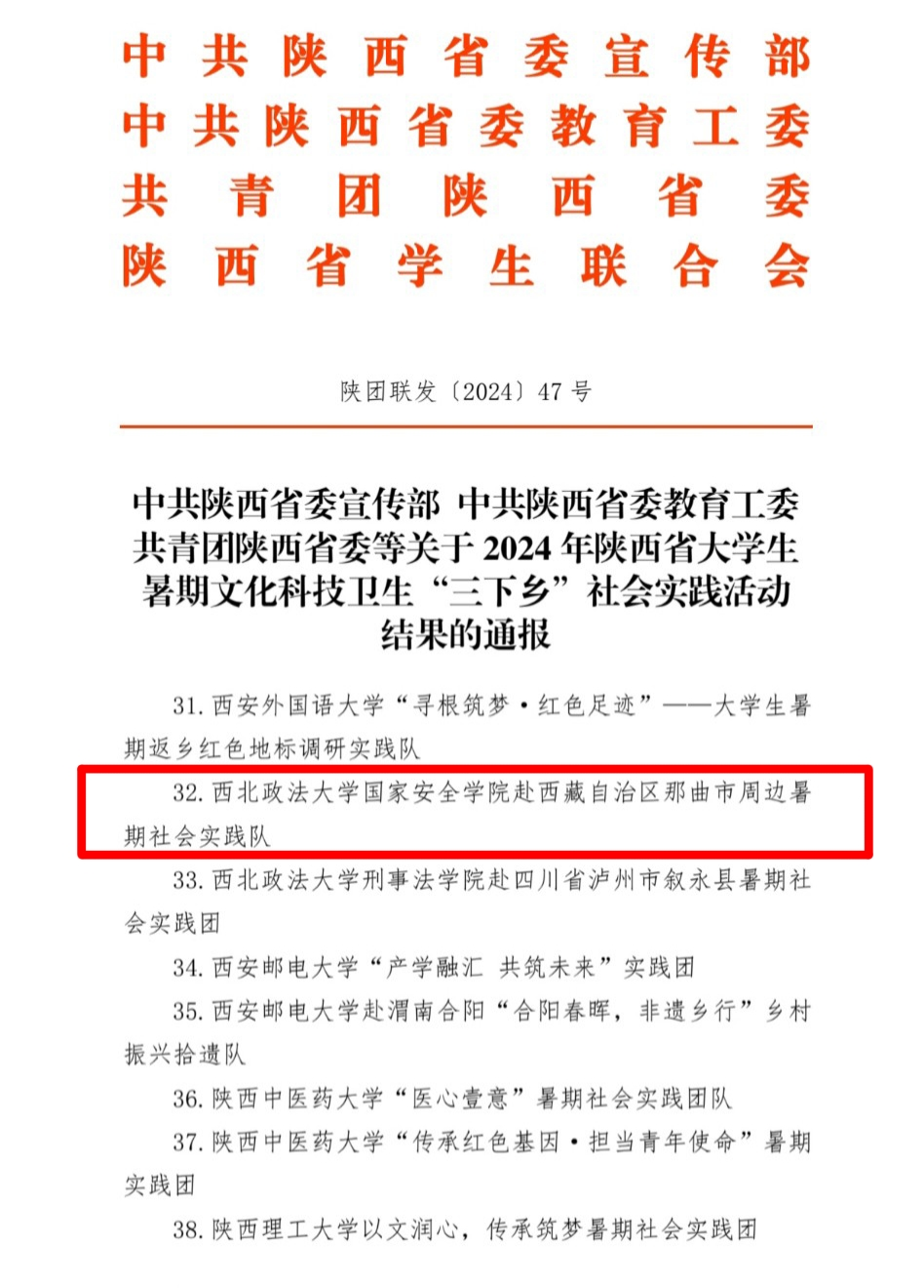 近日,中共陕西省委宣传部、中共陕西省委教育工委、共青团陕西省委、陕西省学生联合会联合印发文件,通报2024年陕西省大中专学生志愿者暑期文化科技卫生“三下乡”社会实践活动评选结果,韩国三级片 “韩国三级片 赴西藏自治区那曲市周边暑期社会实践队”荣获“省级优秀团队”称号。