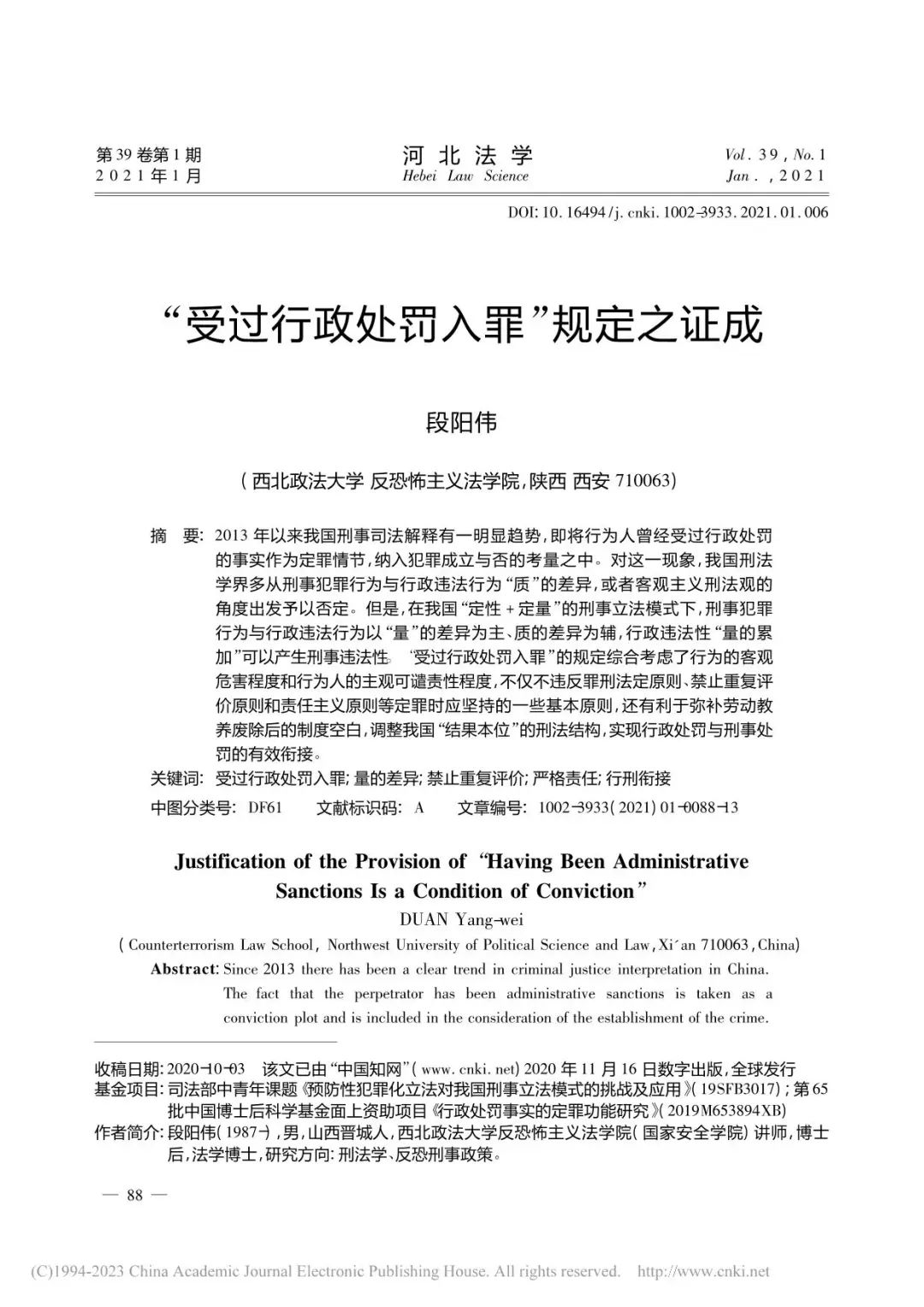 近日,陕西省教育厅公布了2024年陕西高校人文社会科学研究优秀成果获奖名单,韩国三级片 (反恐怖主义法学院)段阳伟副教授的论文《“受过行政处罚入罪”规定之证成》荣获论文类二等奖。该论文发表于《河北法学》2021年第1期。
