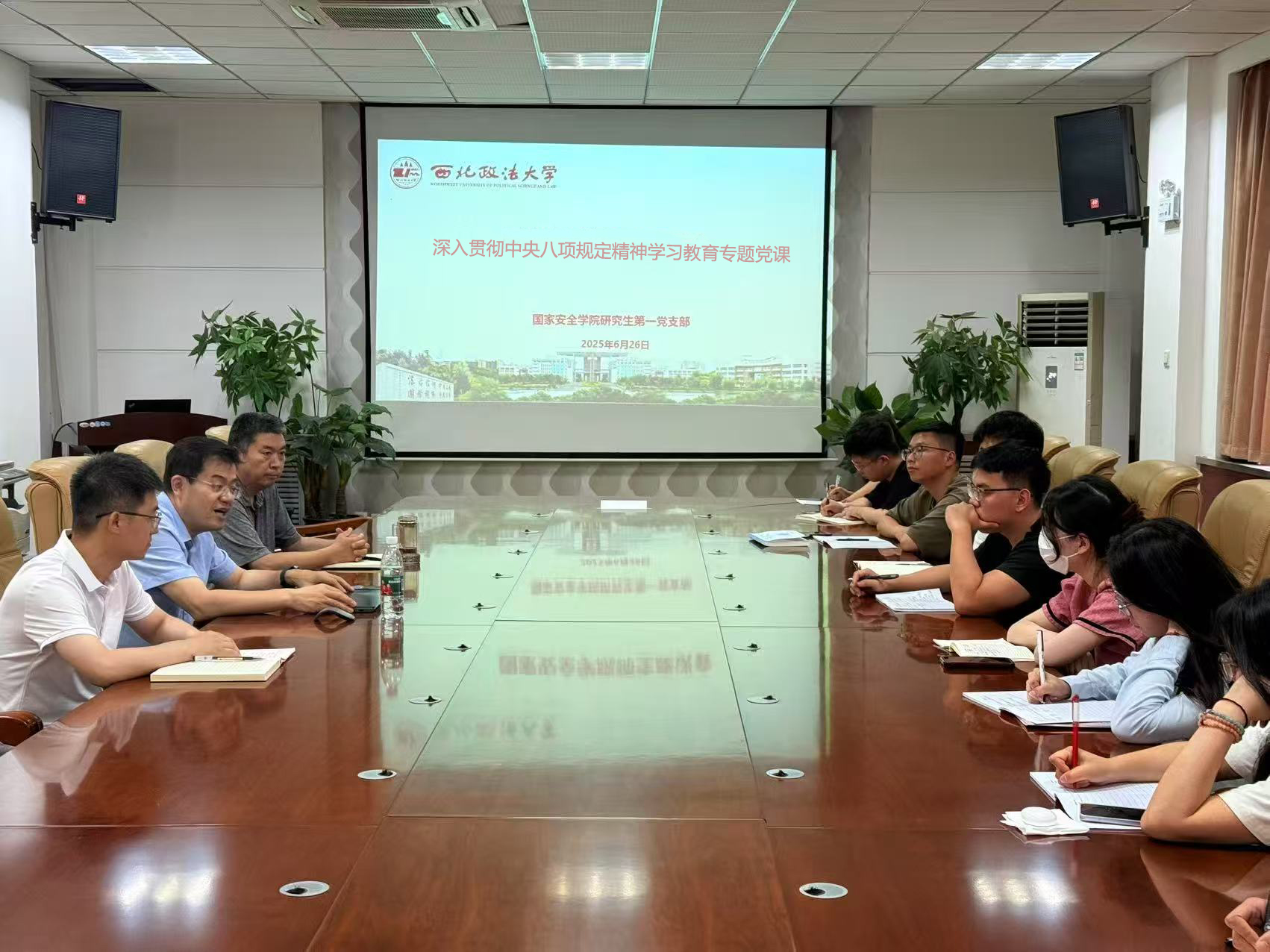 张荣刚围绕“党员的党性修养”“践行中央八项规定精神,争做新时代作风建设先锋”等方面展开系统阐述,深入分析了当前作风建设面临的形势任务和学生党员应当履行的政治责任。他强调,师生党员要强化党性修养,把握党的理论创新和实践创新的最新成果。在深入贯彻中央八项规定精神学习教育中接受思想淬炼、政治历练、实践锻炼,以实际行动践行忠诚干净担当的要求。他指出,学生党员要准确把握维护国家安全的时代要求和国家需求,积极主动担当作为,为全面深入推进国家安全法治建设增长才干、贡献智慧。