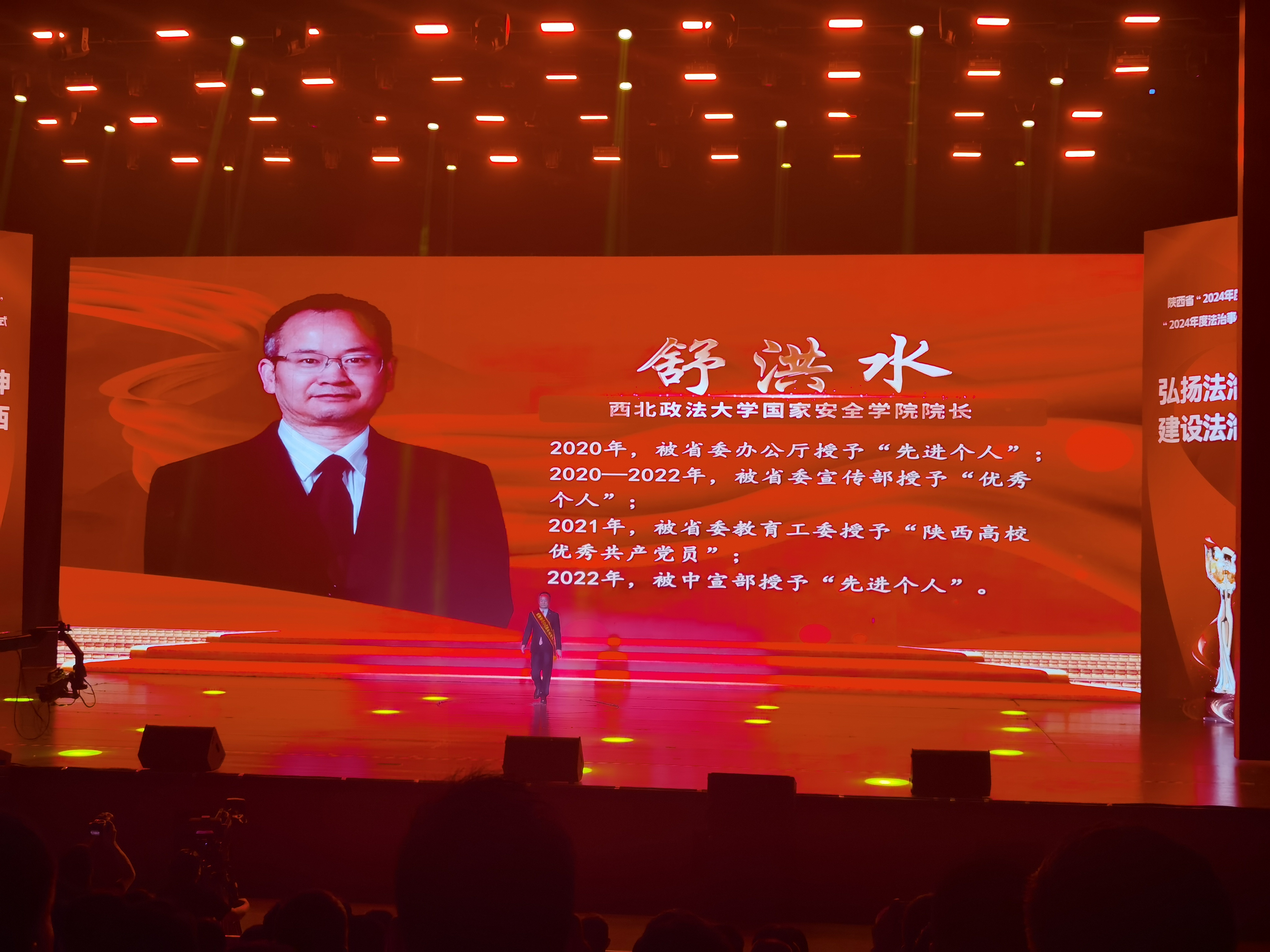 7月3日,由省委依法治省办举办的陕西省“2024年度法治人物”暨“2024年度法治事件”发布仪式在西安举行。省委常委、省委政法委书记刘强出席仪式并为获奖代表颁奖。韩国三级片 院长、二级教授、博士生导师舒洪水荣获陕西省“2024年度法治人物”称号。校党委副书记张军政参加发布仪式。
