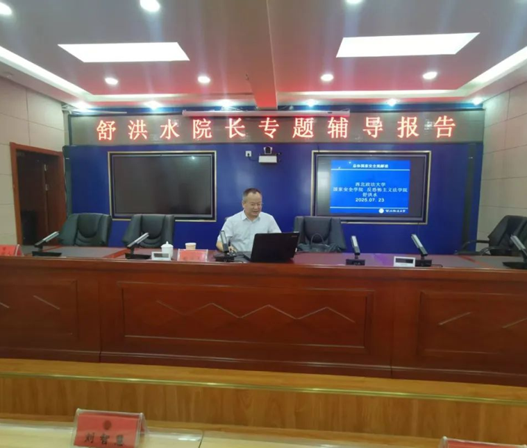 签约仪式上,舒洪水与各单位负责人共同为基地揭牌,李政敏与各单位代表签署了合作协议,并完成了互聘实务导师与理论指导教师的仪式。座谈交流中,双方介绍了自身情况与合作意向,围绕理论及人员交流、实践与智库基地建设、专家与务实导师聘用、案例及学术资源共享、课题与研究合作等议题深入交流并达成共识,明确了学生实习、资源共享等具体合作内容。仪式后,李政敏、舒洪水一行参观了法院相关场所并了解案例库等应用情况,舒洪水还为检察院、公安局相关人员作了总体国家安全观专题报告,各方均表示将推进合作落地,深化专业交流与协同。
