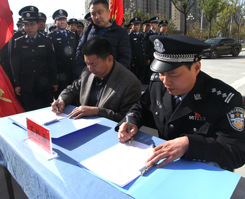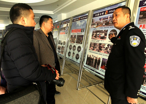 双方签订了共建协议,并为“实践研究基地”揭牌。揭牌仪式结束后,李政敏一行在陈永锋政委和县公安局副局长党健陪同下观看了大荔县公安局反暴恐宣传演练和工作成就展。