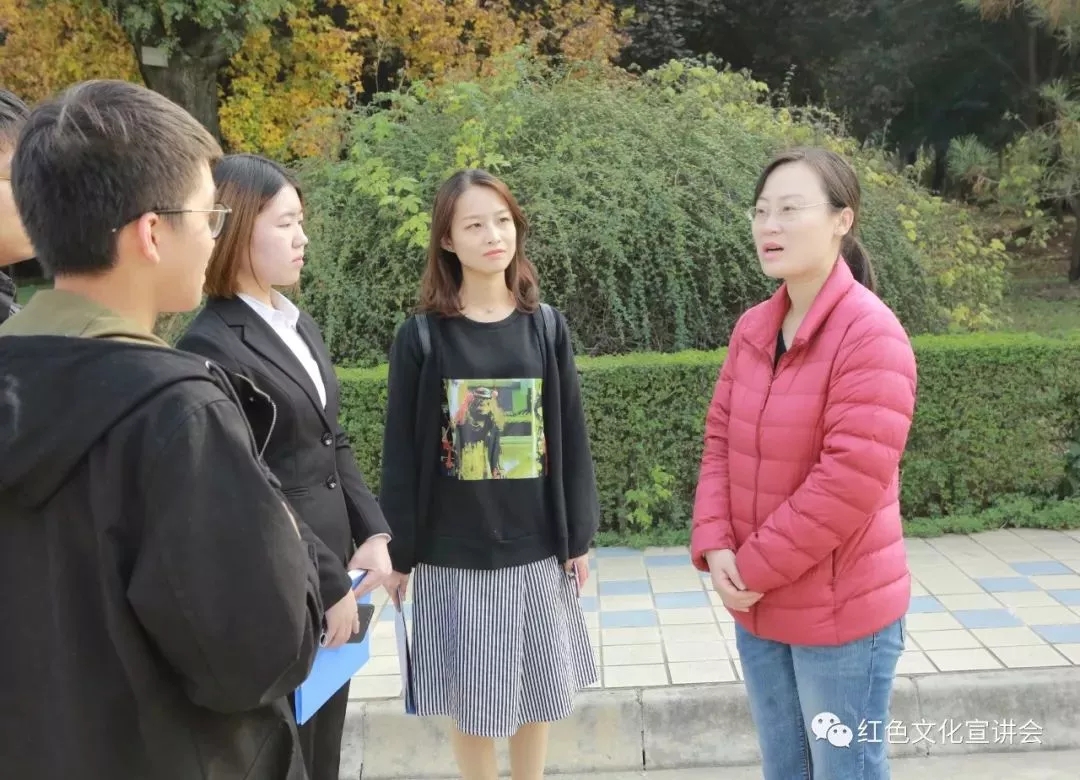 为进一步传承和弘扬我校红色文化基因,深入贯彻落实学校立德树人、培养卓越人才的教育方针,我校校园红色文化宣讲协会成员于10月24日下午为商学院2018级新生开展了入学教育活动,反恐怖主义法学院刘妍良老师、贺星婵老师以及商学院张琪老师出席本次活动。此次宣讲主要是对我校育人理念石、校训印、“老延大”优良传统传承壁三个景点进行教育学习,更好地帮助学生了解校史校情、体悟校训校风。