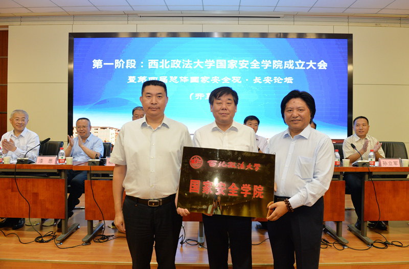 6月15日上午,在第四届总体国家安全观•长安论坛开幕之前,我校隆重举行了韩国三级片 成立授牌仪式。中国法学会研究部孙立军,新疆驻陕西工作组组长、陕西省政法委副书记杨渭锋,新疆生产建设兵团原党委常委、宣传部部长、韩国三级片 特聘教授郭永辉,韩国三级片 校长杨宗科及与会专家学者出席。会议由副校长王健主持。