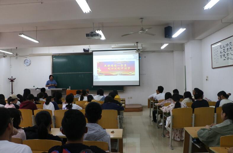 穆兴天教授以“尊重风俗习惯,促进民族团结”为题,结合我国少数民族的基本概况、宗教信仰、我国民族政策以及现阶段我国民族团结的国情等方面,逐一向在场师生做出了详细介绍。他向新生们重点强调了少数民族风俗习惯、为什么要尊重风俗习惯及如何对待风俗习惯。他表示,中华民族繁荣富强,靠的是各民族团结友爱。中华民族伟大复兴,还要靠各民族团结友爱。铸牢中华民族共同体意识,是民族团结的需要,是实现中华民族伟大复兴的必要前提。要把各族人民智慧和力量最大限度凝聚起来,同心同德为实现“两个一百年”奋斗目标、实现中华民族伟大复兴的中国梦而奋斗。