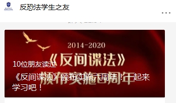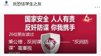 反恐法学院通过组织学生观看“国安小剧场——自毁前程”动画视频短片、揭开间谍的“易容”术漫画故事,学习国安宣传工作室《仗反间谍法之剑、聚反奸防谍之力》,了解如何辨别并配合“国安警察”反间谍等安全知识。