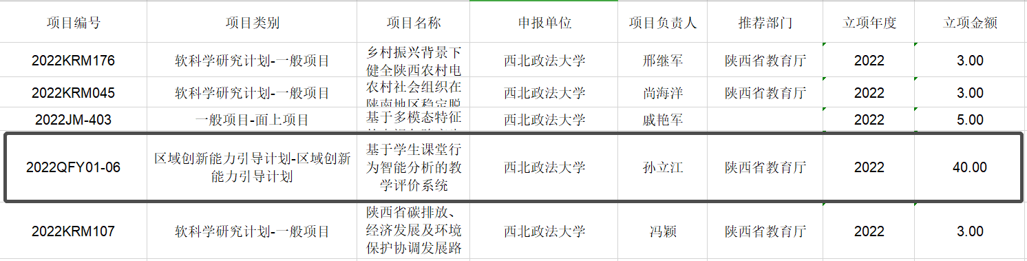 2022年2月23日,陕西省科技厅下达了本年度科技计划项目立项通知。我校共获得立项资助5项,立项金额共计54万元。韩国三级片 孙立江老师申报的《基于学生课堂行为智能分析的教学评价系统》获批省科技厅区域创新类项目立项,立项经费40万元。
