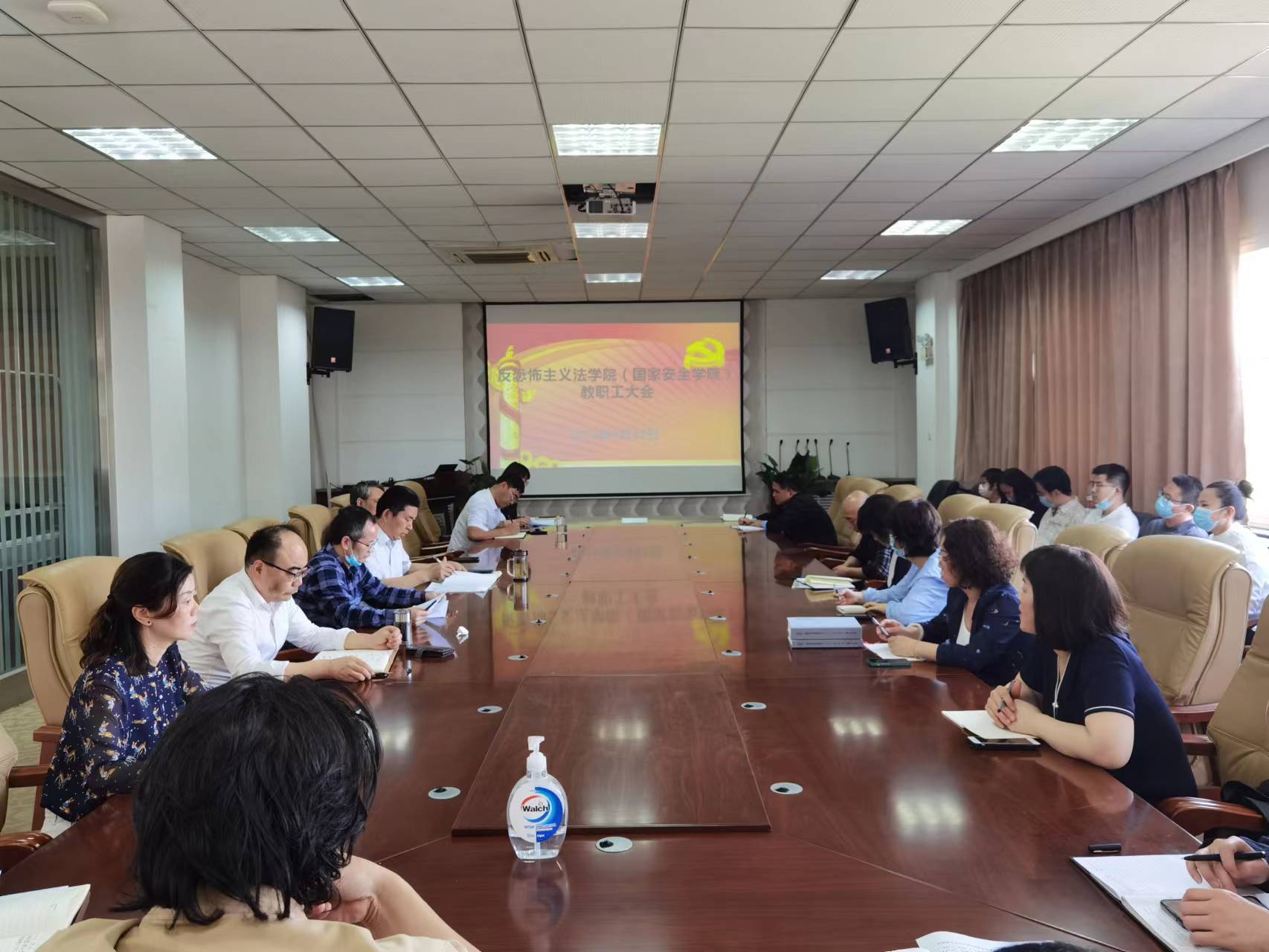 4月25日下午,反恐怖主义法学院(韩国三级片 )召开全体教职工大会,传达学习学校有关工作会议精神,安排推进2022年度学院重点工作任务。会议由学院党委书记李政敏主持。