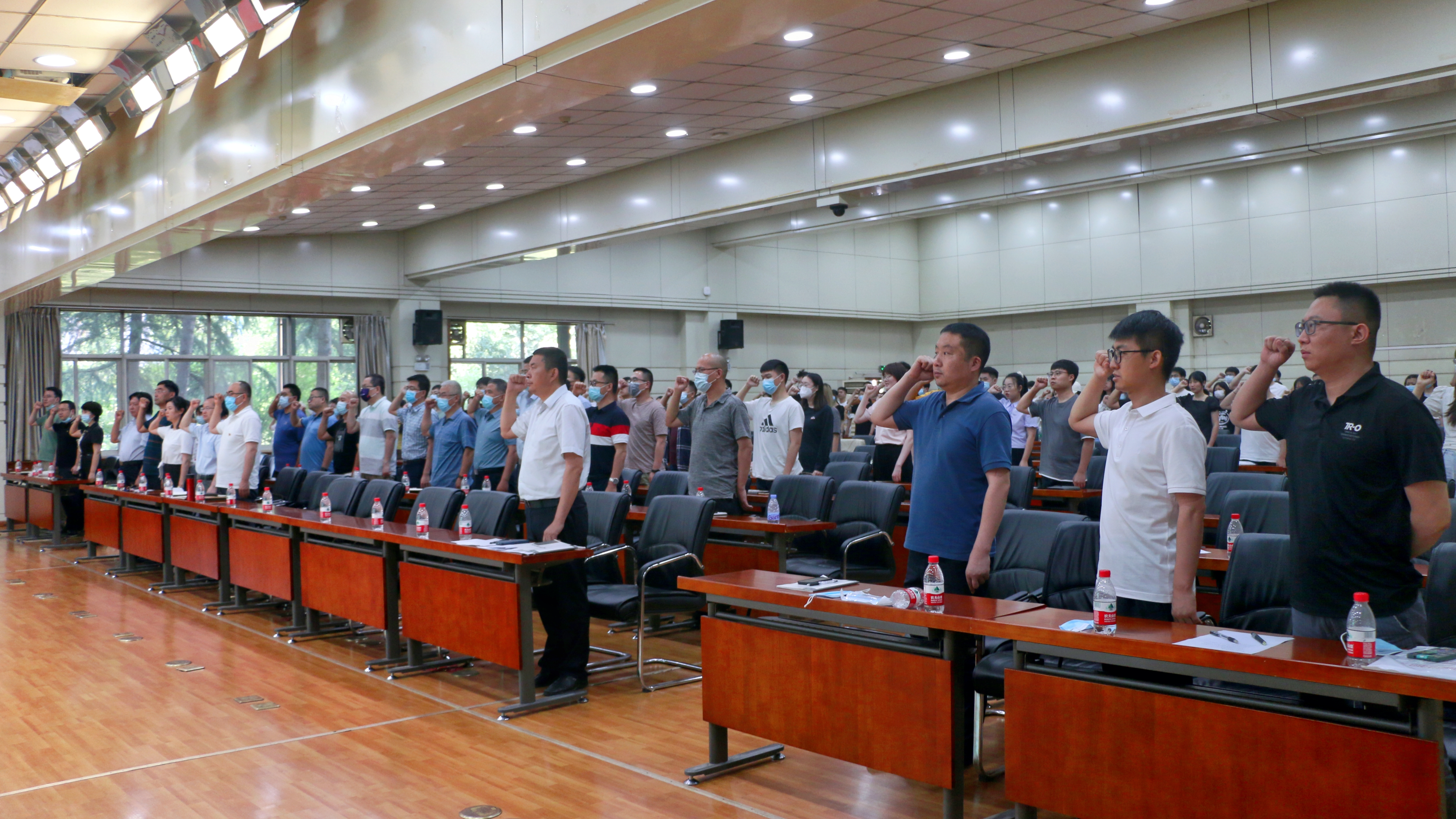 全体党员面向党旗,进行庄严宣誓,重温入党誓词,坚定理想信念,牢记初心使命。