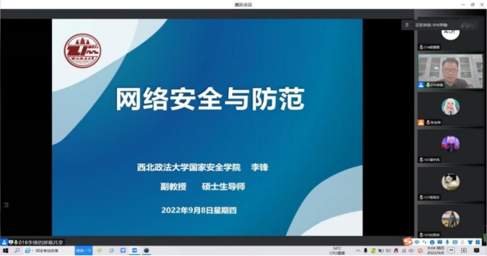 22级新生开展题为“网络安全与防范”的讲座。李锋老师就网络安全的内容、含义、维护网络安全的意义以及如何防范网络安全问题等进行全面讲解。