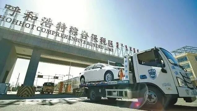 内蒙古自治区呼和浩特综合保税区二手车出口车辆出区(图片来源:内蒙古日报)