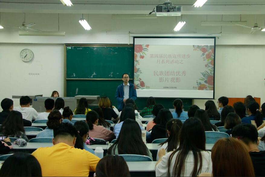 各年级学生代表、学工部少数民族志愿者部全体成员共同观看电影《塔克拉玛干的鼓声》《红河谷》《天慕》。活动由团委书记席捷主持。